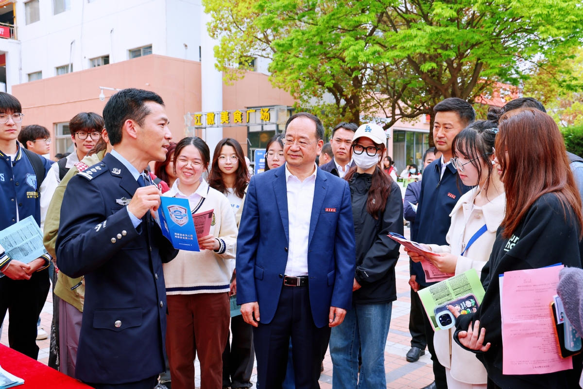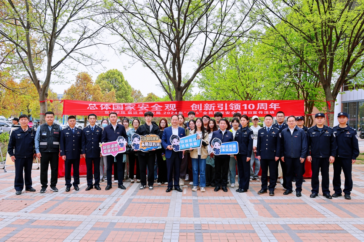 今年4月15日是第九个“全民国家安全教育日”,也是习近平总书记提出总体国家安全观10周年。为增强广大师生国家安全意识,筑牢国家安全教育防线,宿迁学院联合属地公安机关集中开展“总体国家安全观·创新引领10周年”主题宣传活动。校党委书记徐德,副校长施正荣,党委常委、副校长侍旭,党委常委、宣传部长李明建等现场观摩指导。