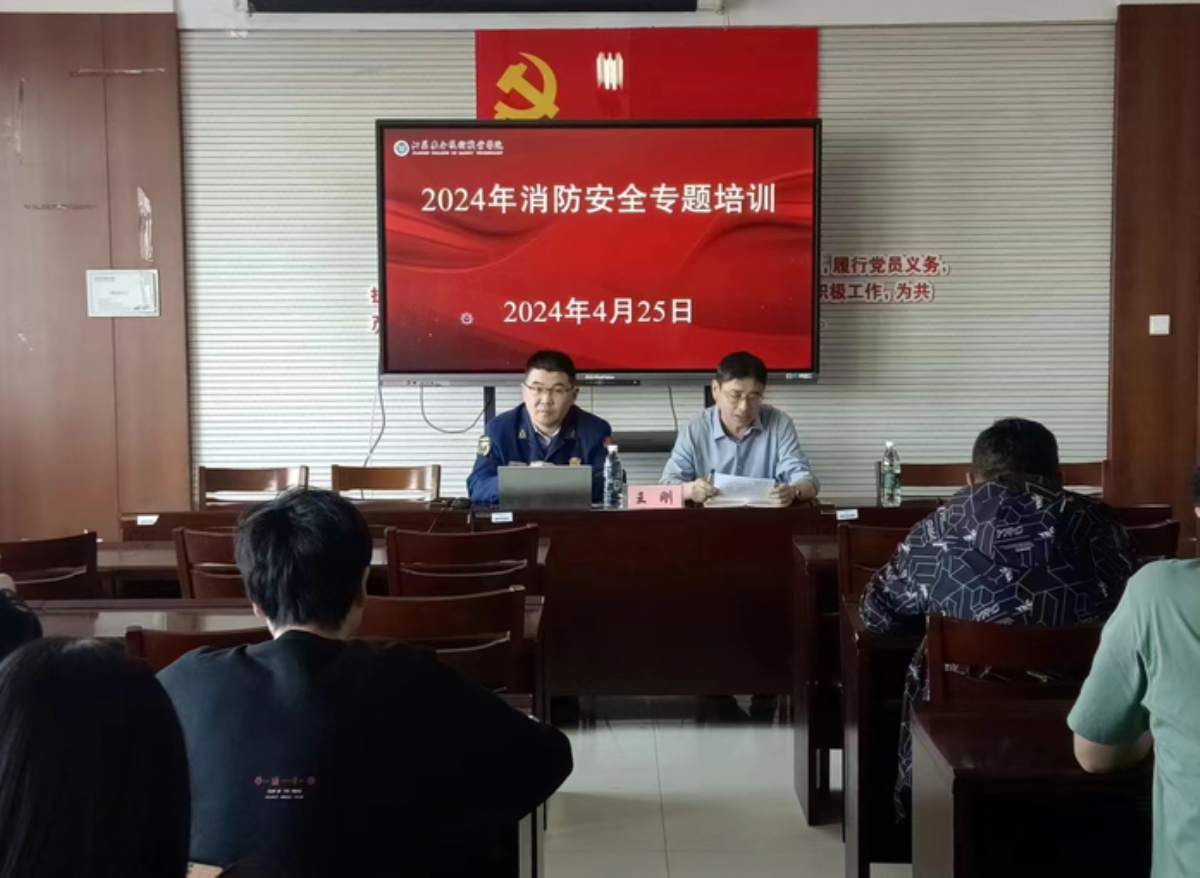 4月25日,江苏安全技术职业学院邀请贾汪区消防救援大队参谋王刚到校开展消防安全专题讲座。全体安保人员、各基层单位消防安全管理人参加培训。