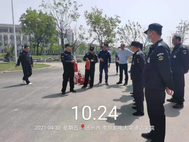 为响应扬州安全生产委员会办公室《关于立即开展消防设施安全检查和消防演练的通知》文件,2021年4月30日上午10许,南京邮电大学通达学院保卫处副处长袁岩同志组织保安、物业、宿管、食堂人员在校内进行消防演习。