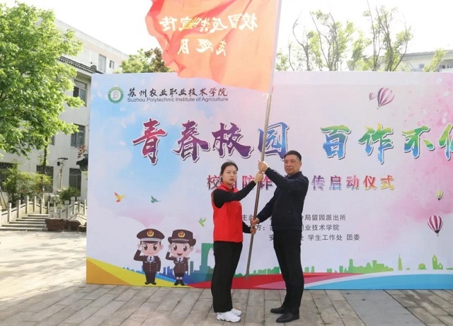 为抑制电信网络新型违法犯罪高发态势,配合打好苏州市打击治理电信网络新型违法犯罪止损控案百日攻坚战,4月29日,苏州农业职业技术学院联合姑苏公安分局留园派出所举行“青春校园,百诈不侵”校园反诈防骗宣传活动。安全保卫处、学工处、团委以及各二级学院参加此次活动。