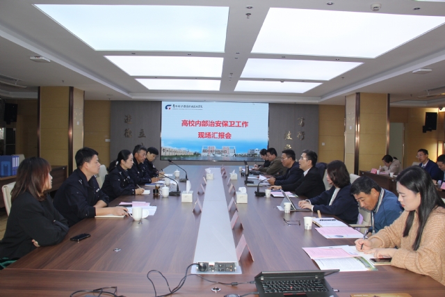 汇报会上,张震宇代表学校致欢迎辞。姜莉娜介绍检查组成员以及工作安排。保卫处处长罗卫东从组织领导、队伍建设、物防技防、制度落实、重点工作、亮点特色以及仍需努力方向等方面,向检查组作了专项汇报。