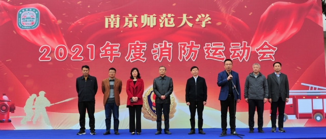 11月17日下午,南京师范大学保卫处在仙林校区西区田径场举行2021年度消防运动会。党委常委副校长李久生、党委常委副校长陈治松、校办副主任吕挥、学工处处长李莉、后勤管理处处长孙志仁、离退休工作处处长王学珍出席活动,活动由保卫处处长王良鹏主持。