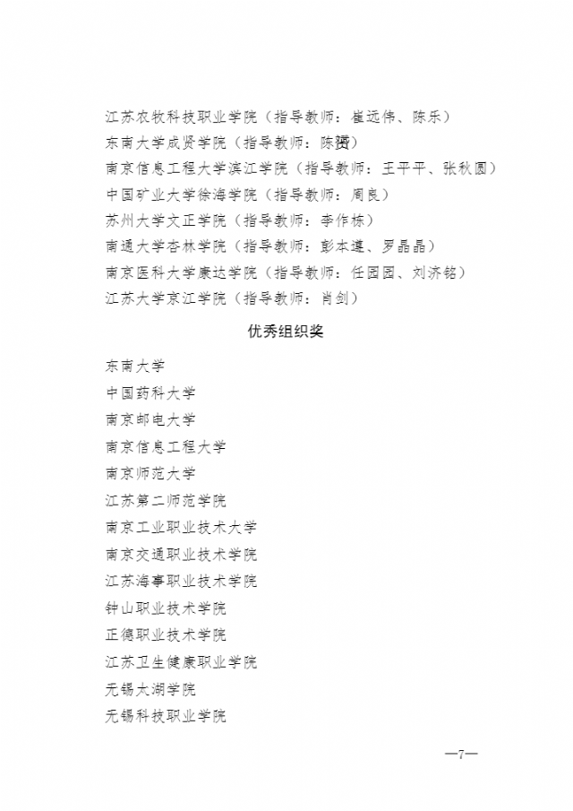关于公布江苏大学生“安全让生活更美好” 短视频大赛获奖名单的通知