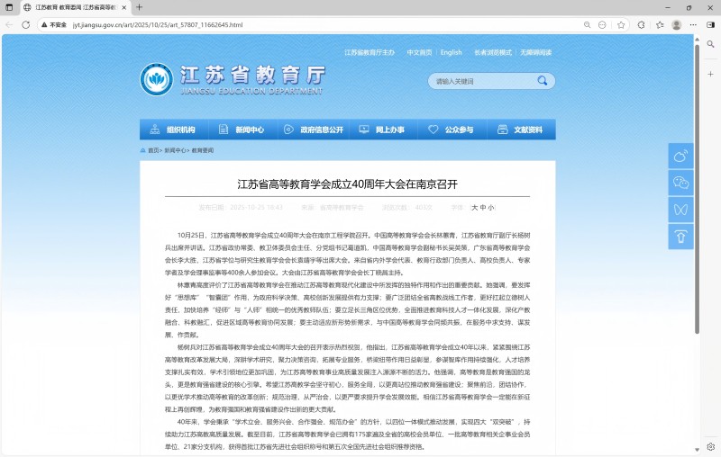 江苏教育:江苏省高等教育学会成立40周年大会在南京召开