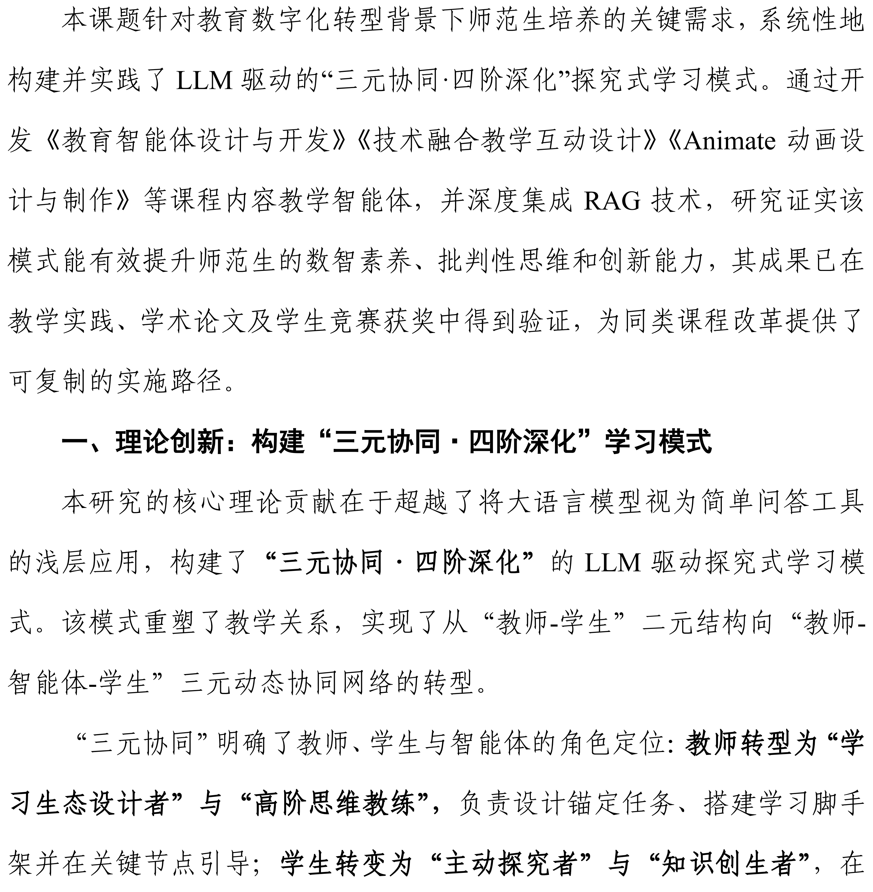 南京晓庄学院柴阳丽主持完成了“2024年高等教育数字化转型与教育现代化实践研究”专项课题“大语言模型驱动的探究式学习实践研究——以《数字教育技术》课程为例”(课题编号:2024CXJG078),课题组主要成员:周建铭、张莉、杨欢、许玲、魏 婷、朱一童、邵皓哲